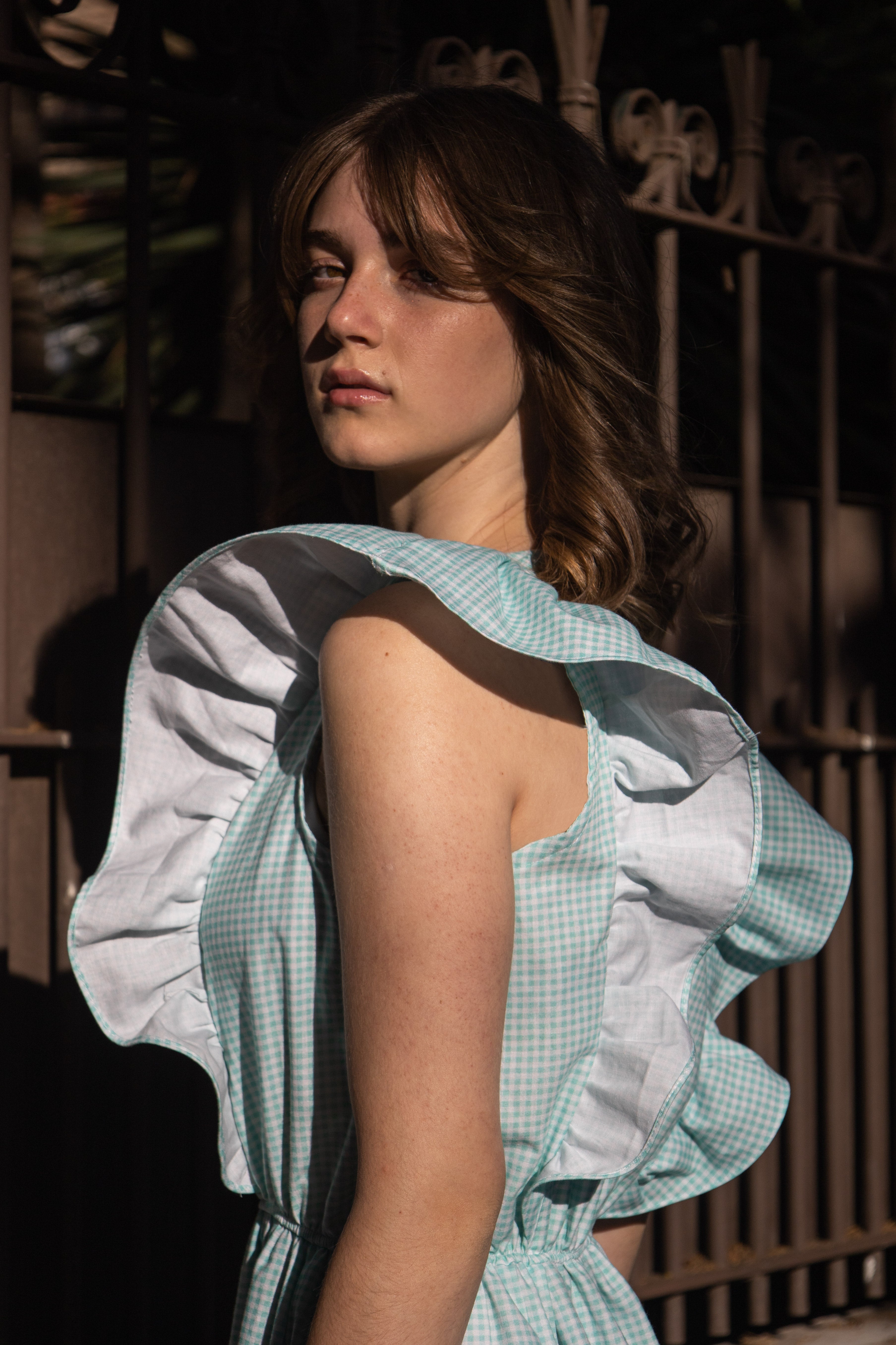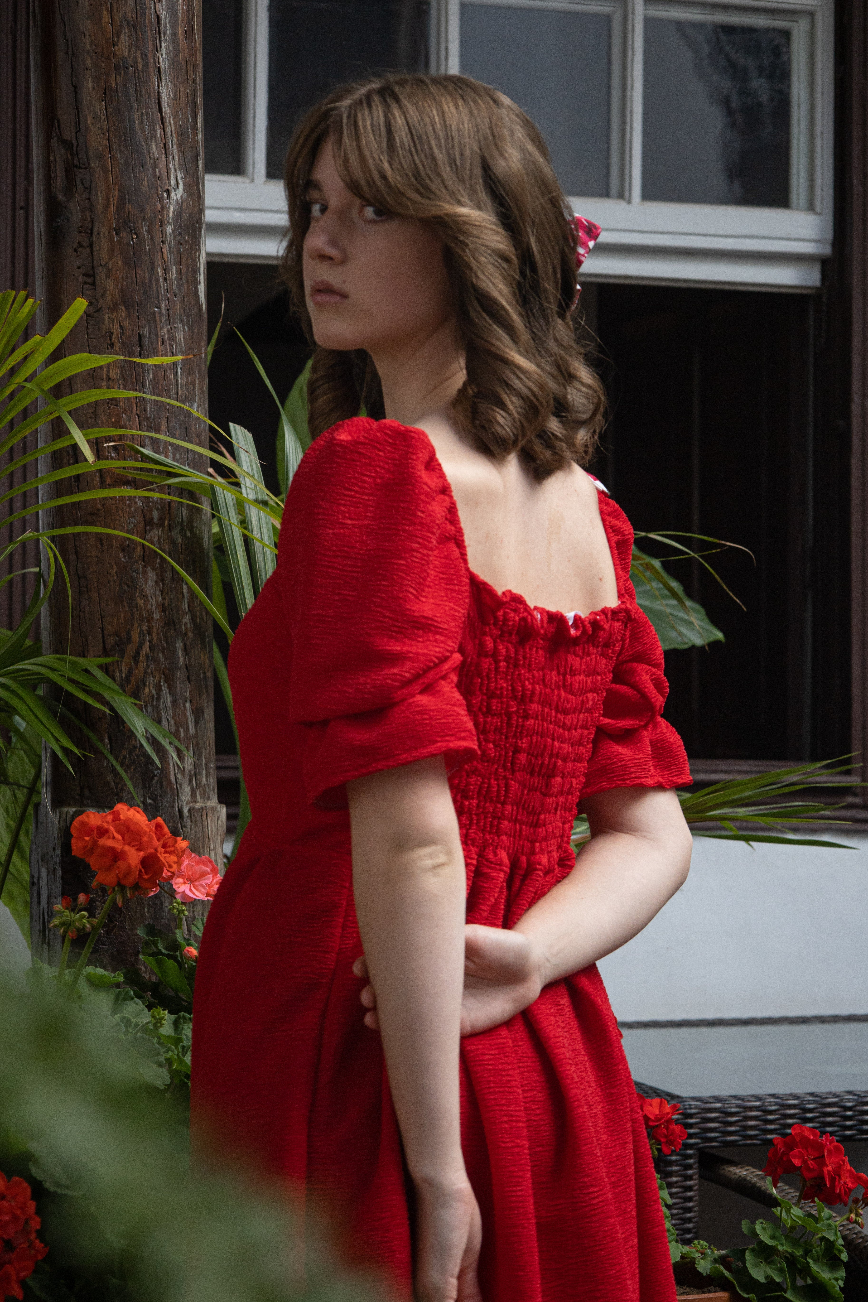 Conjunto de chaqueta y pantalon volantes vinotinto