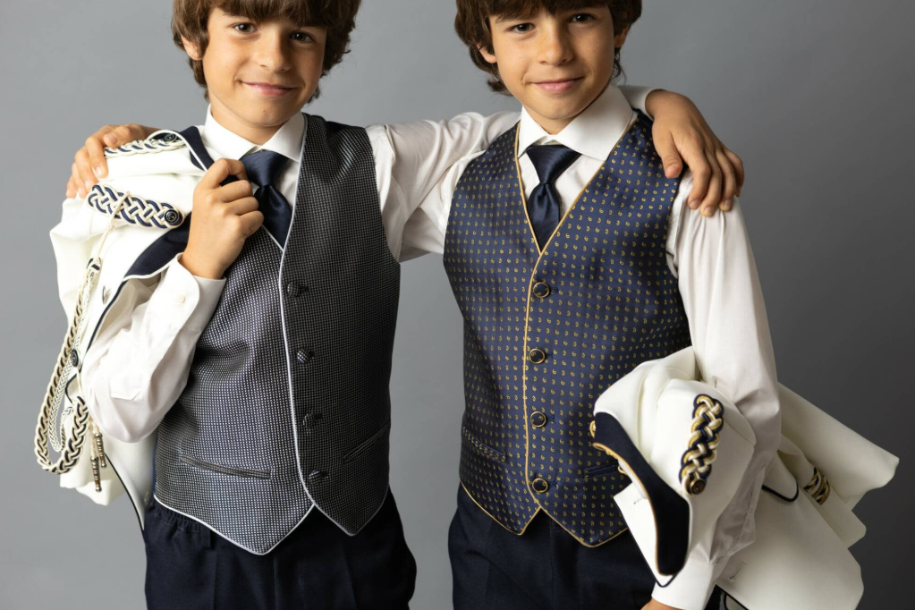 Traje de comunión de almirante de niño, trae chaleco, corbata, chaueta, pantalon y camisa. con detalles en color oro
